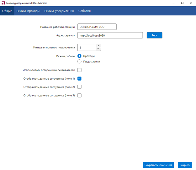 Для настройки работы программного модуля HtPassMonitor.Client запустите Конфигуратор клиента. Для запуска Конфигуратора нажмите кнопку с изображением шестерёнки (см. рисунок 3.3.1).