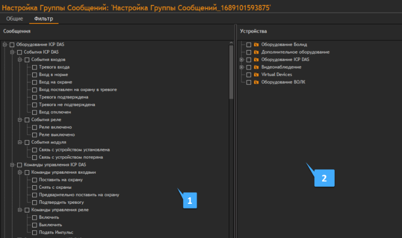 Вкладка «Фильтр» позволяет указывать, какие именно события и с каких устройств входят в данную группу событий.