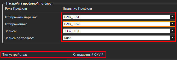 Особенности настройки ONVIF IP-камеры является то, что в полях настройки профилей потока на вкладке «Общие» указываются профили ONVIF - "media_profile1" / "media_profile2" / "media_profile3".