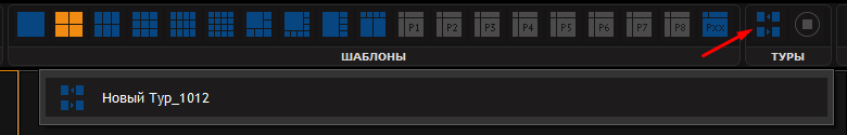 Для того чтобы остановить выполнение тура необходимо навести фокус на видеоокно шаблона, в котором он запущен, и нажать кнопку  (элемент 1.6 рис. 12.2.1).