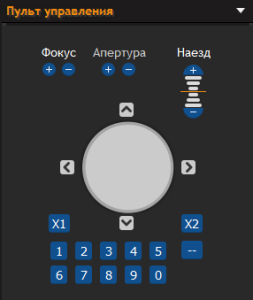 Для управления поворотными камерами видеонаблюдения или платформами предназначен специальный интерфейсный элемент – панель пульта управления (элемент 3 рис. 12.2.1 раздел 12.2 Описание окна режима «Видеооператор»).
