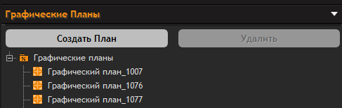 - в разделе "Графические планы" нажатием на "+" раскрыть древо заранее подготовленных графических планов или создать новый: