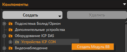 - откройте в дереве раздел "Компоненты" - "Оборудование ICP DAS" - "Устройства ICP CON"