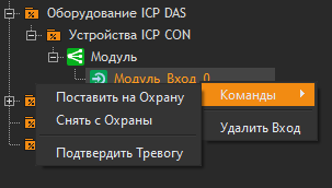 Для добавления входов или реле необходимо выбрать в дереве сетевой модуль и выбрать соответствующий пункт в контекстном меню: