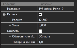 Область - установка флага позволяет переключить отображение элемента на графическом плане в виде области или линии, а также задать его толщину.