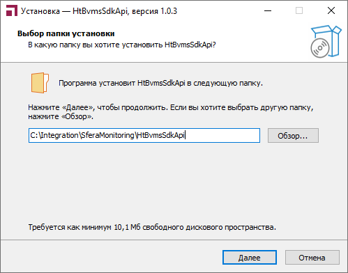По умолчанию, интеграционное решение устанавливается в папку "C:\Integration\SferaMonitoring\HtBvmsSdkApi".