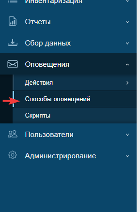 - откройте страницу "Оповещения"→"Способы оповещения"