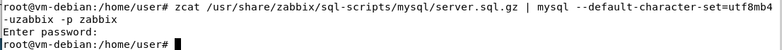 zcat /usr/share/zabbix/sql-scripts/mysql/server.sql.gz | mysql --default-character-set=utf8mb4 -uzabbix -p zabbix