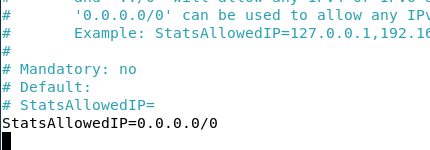 - StatsAllowedIP - Данная настройка содержит список внешних адресов, с которых разрешено подключение различных сервисов Zabbix, таких как прокси или агент. По умолчанию = 127.0.0.1. Если требуется подключение внешнего сервиса, то измените настройку на "0.0.0.0/0" или "::/0".