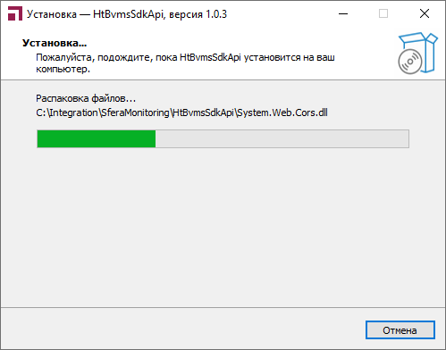По умолчанию, интеграционное решение устанавливается в папку "C:\Integration\SferaMonitoring\HtBvmsSdkApi".