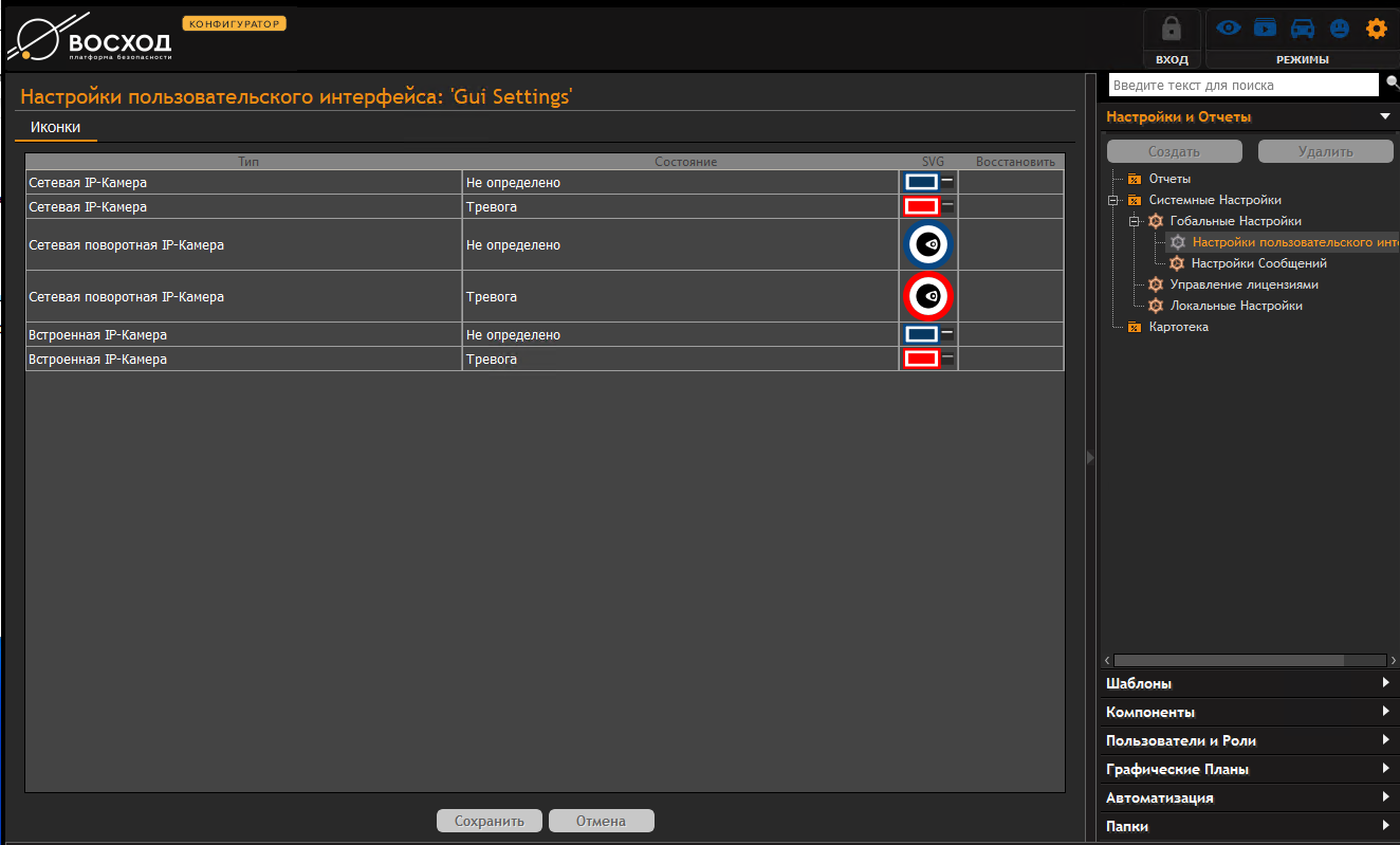 Пользователь может настроить вид иконок, которые изображают камеры на графических планах. Для этого необходимо дважды кликнуть левой кнопкой мыши на нужную иконку. Появится диалоговое окно выбора файла, после чего пользователь может загрузить новое изображение.