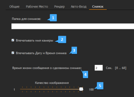 | 5 | Коэффициент сжатия, который характеризирует качество изображения. Настройка осуществляется путем перемещения ползунка по шкале. |