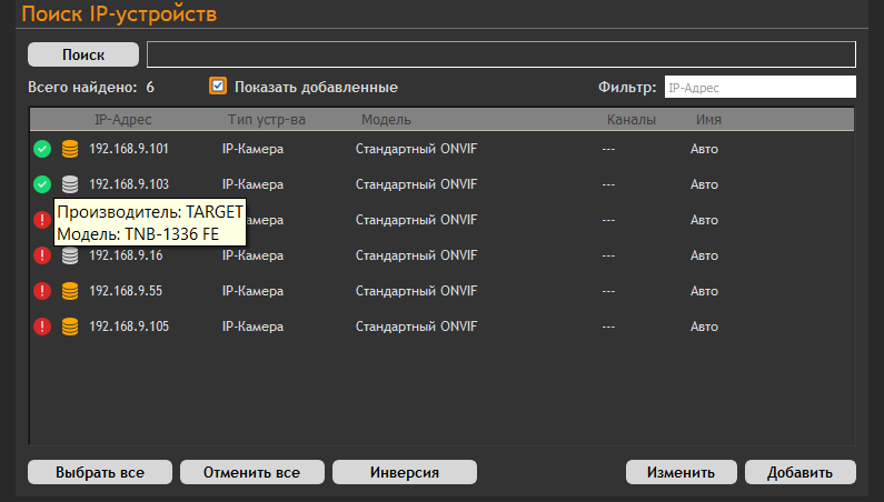 - перейдите на вкладку "Поиск IP-устройств" и запустите процесс поиска согласно инструкции выше.