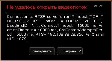 Если все данные введены верно, камера будет демонстрировать изображение. Если данные были введены неверно, программа выдаст сообщение об ошибке (см. рис. 9.1.3.4).