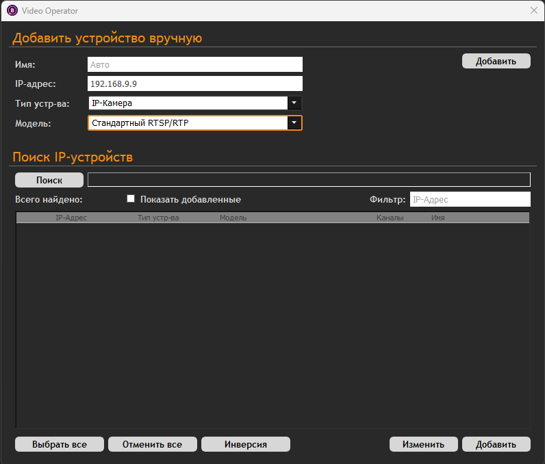 Рисунок 9.1.3.2. Добавление устройства "RTSP IP-камера"