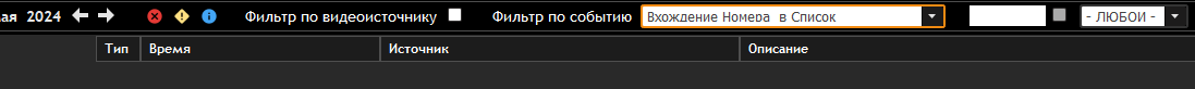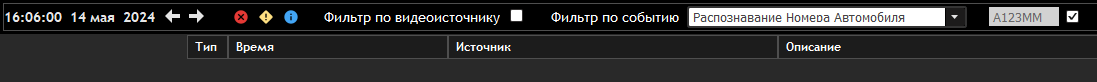 Рисунок 12.6.3– Фрагмент окна «Видеооператор». Распознавание Номера Автомобиля - установите в поле «Фильтр по событиям». В результате на панели событий в списке отобразятся события «Распознавание Номера Автомобиля» только для указанного номерного знака или элемента (фрагмента) номерного знака;