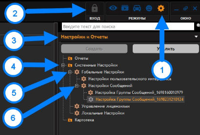 - в древе раскрыть раздел "Системные настройки" (4) и аналогично раскрыть подраздел "Глобальные настройки" (5);