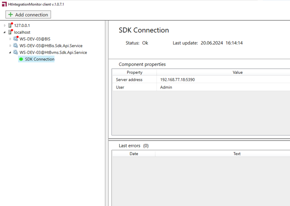 - В файле лога не должно быть ошибок. При успешном подключении к SDK BVMS должна появится запись: "BVMS SDK service is Ok".